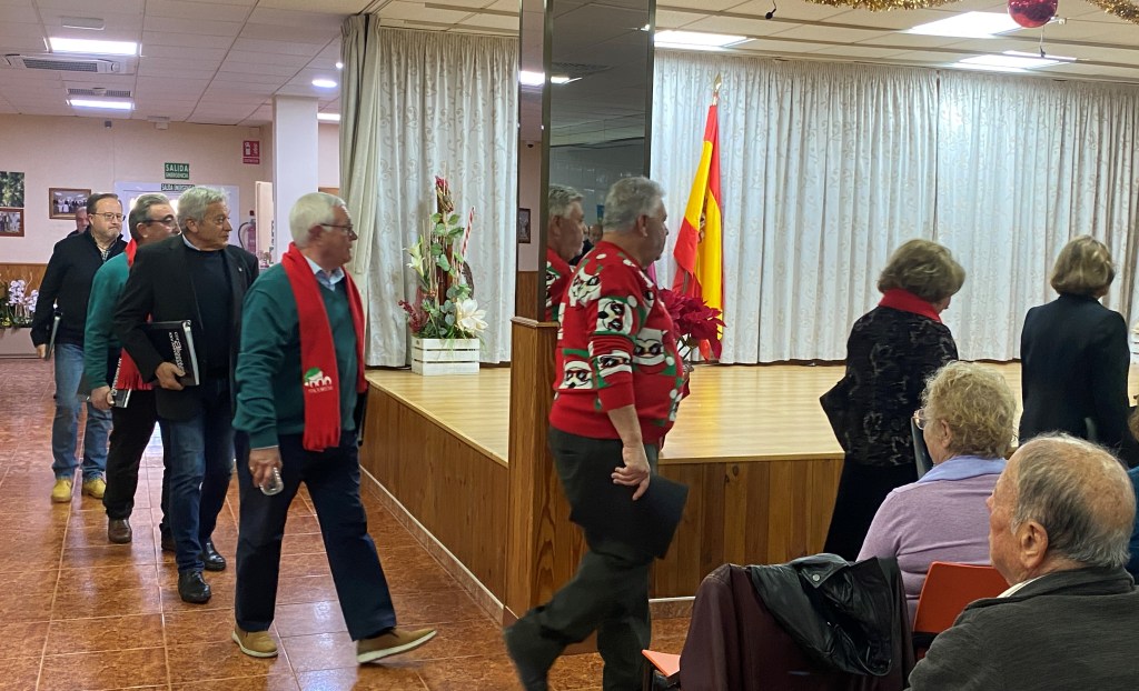 Al término de la actuación, el público se puso en pie para ovacionar a los coralistas, reconociendo su entrega y talento. El presidente de la Junta de Participación, en un emotivo discurso, agradeció a la Coral Argentum su participación y destacó la importancia de este evento para la comunidad. Además, aprovechó la ocasión para rendir homenaje a Conchi Pagán por su destacada labor al frente del centro durante todos estos años y para desearle mucho éxito a Basilio Castaño en su nueva etapa, agradeciendo al alcalde de La Unión, Joaquín Zapata, su presencia en este acto acompañado de las concejalas Isa Egea y Dami García