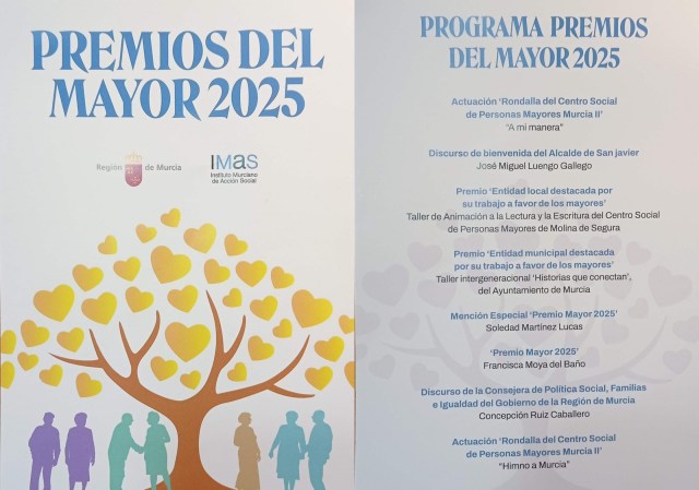En el día de ayer, nuestro Centro Social asistió a la Gala de Entrega de Premios MAYORES 2025 celebrado en el Teatro de Invierno del Parque Almansa de San Javier, donde pudimos disfrutar de una tarde entrañable junto a otros usuarios de los Centros de Archena, Molina de Segura, Murcia II, Roldán y San Javier, y demás asistentes a la Gala, entre los que se encontraban representantes de la Administración Regional, como Dª Conchita Ruiz Caballero (Consejera de Política Social, Familias e Igualdad) y Dª Verónica López García (Directora Gerente del IMAS) entre otros, y una nutrida representación de asociaciones, diversos colectivos y numerosas entidades locales, entre las que estuvo representado nuestro municipio.